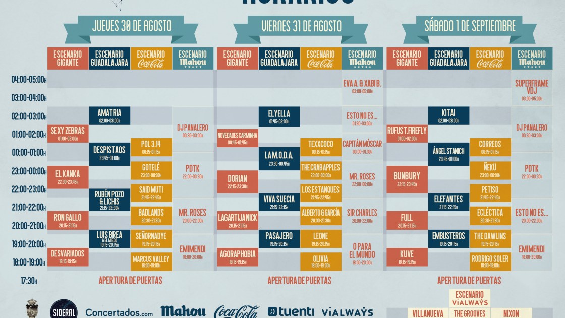 Y esto no es todo… ya que ya tenemos los horarios del festival. Ya puedes consultar los horarios de Gigante 2018 y no perderte nada en los tres días de conciertos de esta quinta edición. Bunbury, Dorian, LA MODA, El Kanka, Ángel Stanich, Elefantes, Rubén Pozo & Lichis, Viva Suecia, Despistaos, Novedades Carminha, ELYELLA, Full, Lagartija Nick, Ron Gallo, Rufus T. Firefly, Kitai, Sexy Zebras, Amatria, Eva A. y Xabi B., Embusteros… todo un cartelazo Gigante que no puedes perderte.