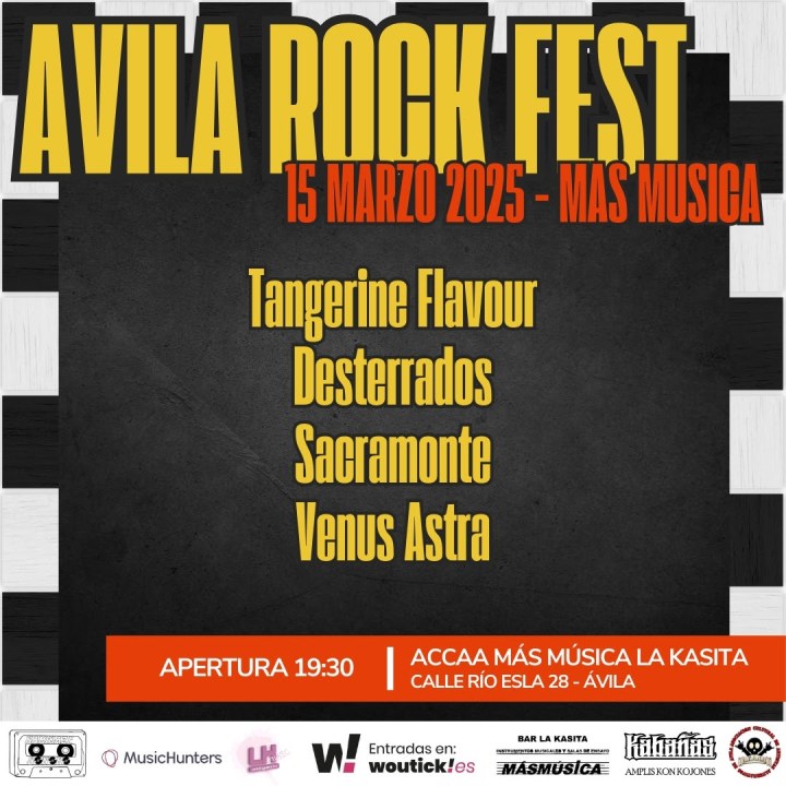 Cuando las ganas de hacer buena música se sobreponen a cualquier cosa surgen cosas bonitas y verdaderas. Es un poco él late motiv del Ávila Rock Fest, un festival que celebrará su primera edición el próximo 15 de marzo en la sala MásMúsica de Ávila. Una ciudad con una cultura musical y cultural enorme y que apuesta por eventos como este, el cual llenará la ciudad de la mejor musical. Una cita donde podremos disfrutar de bandas cómo Tangerine Flavour, Desterrados, Venus Astra o los locales Sacramonte.