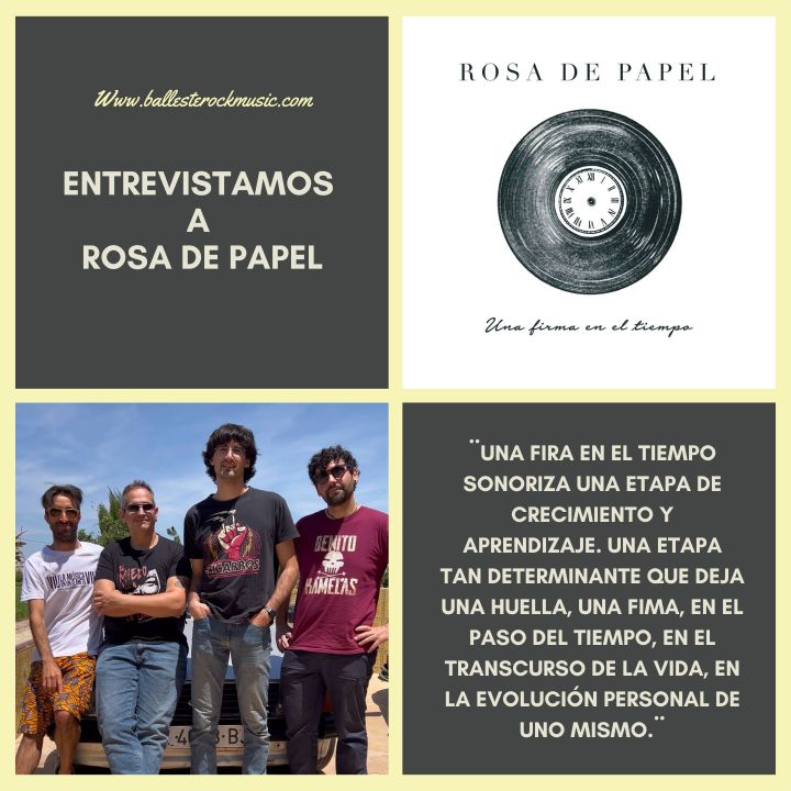 Nos desplazamos hasta tierras valencianas para descubrir a Rosa de Papel, una banda que se mueve en un rock urbano con muchas sorpresas y que acaban de lanzar su primer larga duración. ¨Una firma en el tiempo¨ nos pone en la interesante senda musical de una banda que llega con canciones honestas y que nos deja un trabajo de lo más interesante. Charlamos con ellos para conocer más cosas sobre este primer trabajo y su historia como banda.